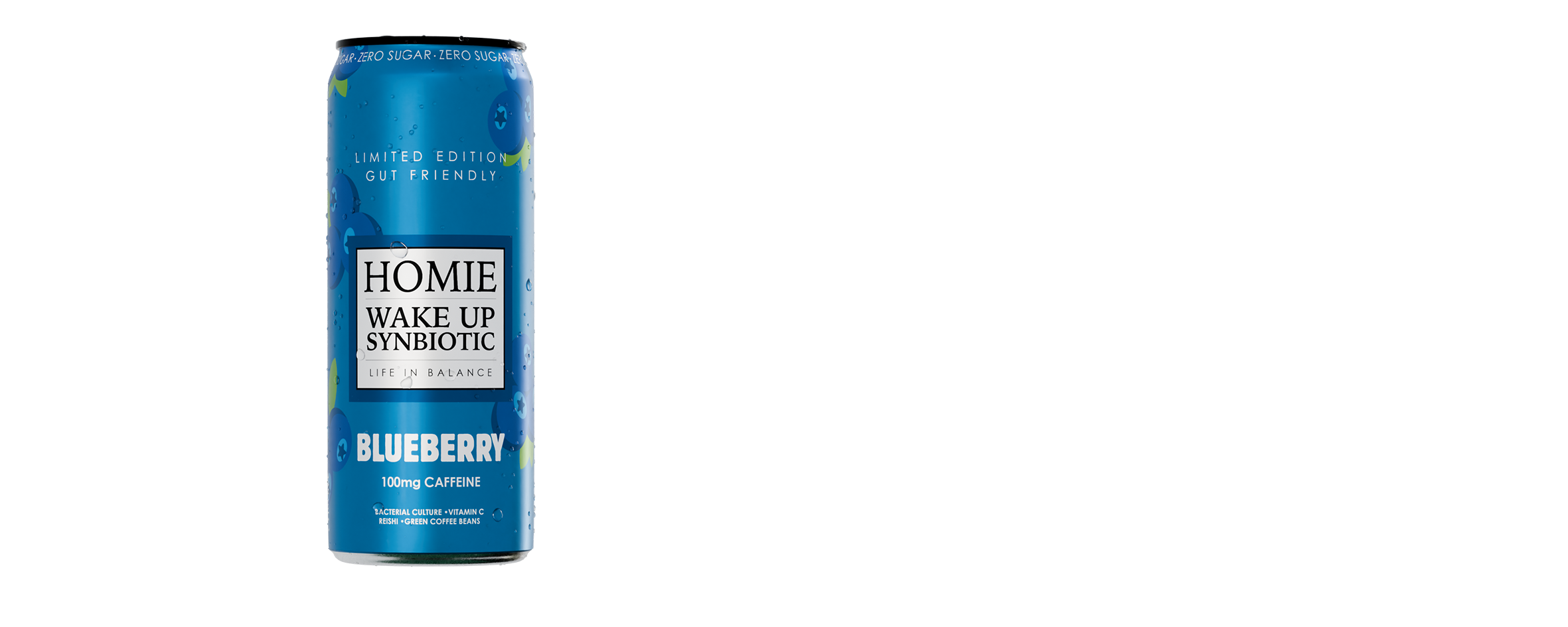 är en kolsyrad dryck med koffein, levande bakteriekultur, reishi, cikoriarot samt utvalda vitaminer och mineraler. Med smak av uppfriskande blåbär.